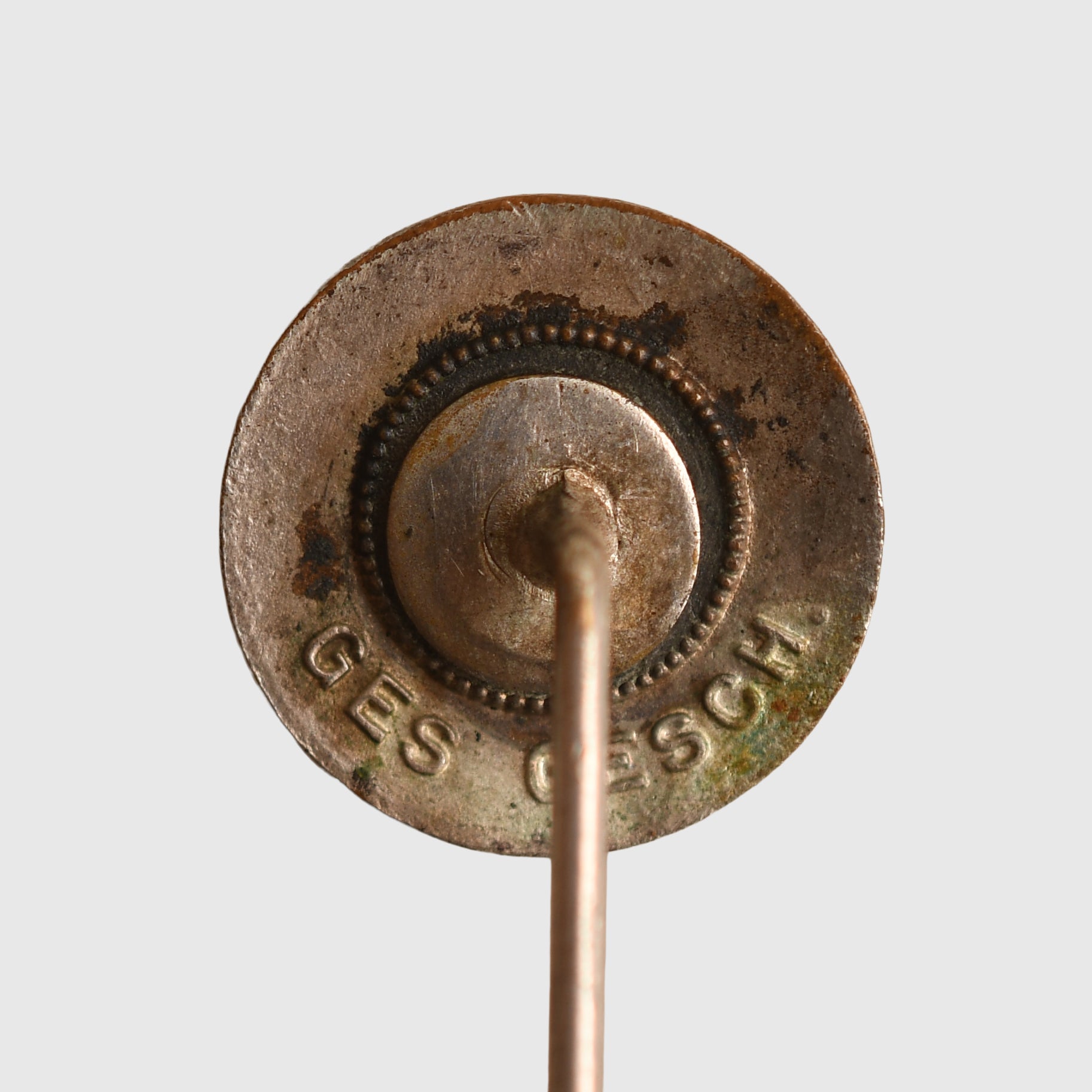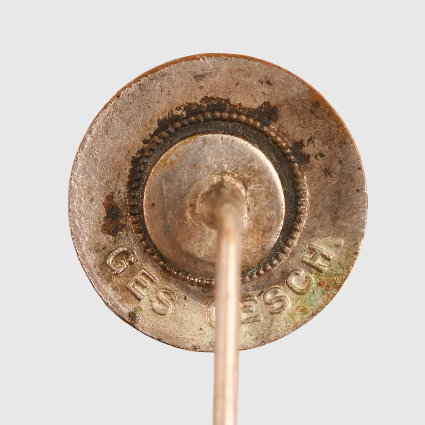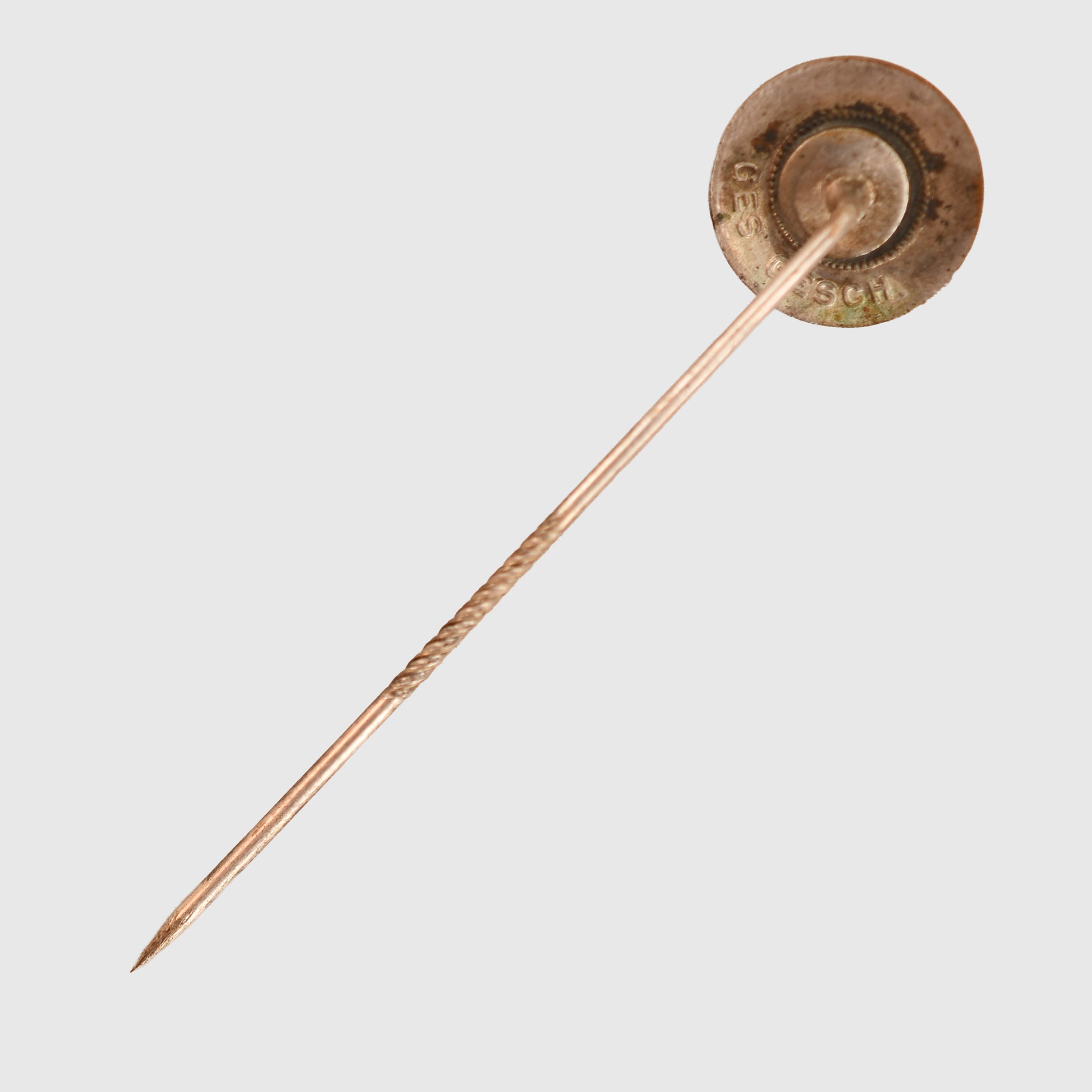 A very nice quality lapel pin party badge measuring 22 mm in circumference, with undamaged enamel, marked Ges Gesch on the reverse side, with its twisted and grooved lapel pin fixing.