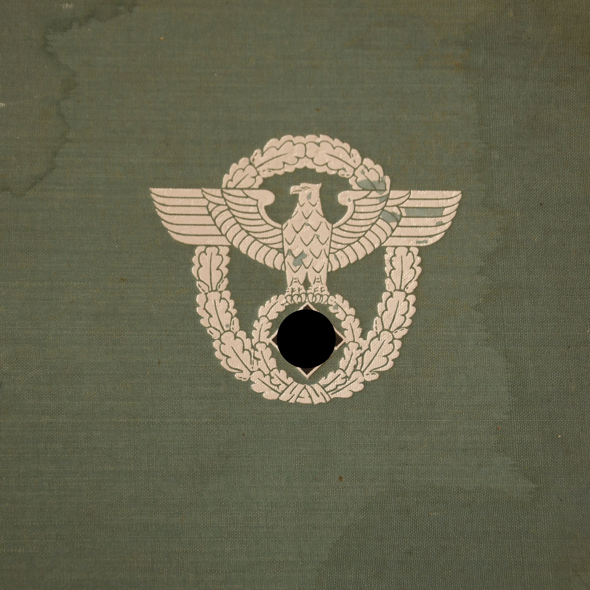 A very rare book on the German Ordnungs Polizei, one of only three copies we have handled in over 35 years. Measuring 27 x 33 cm, the book features an outer green canvas cover with a large Third Reich police insignia, central black swastika, and silver embossing. The binding is unusual for a work of this quality: the 13 beautifully illustrated colour plates, each accompanied by pages of text, are placed within the cover, punch-holed, and held together with cord.