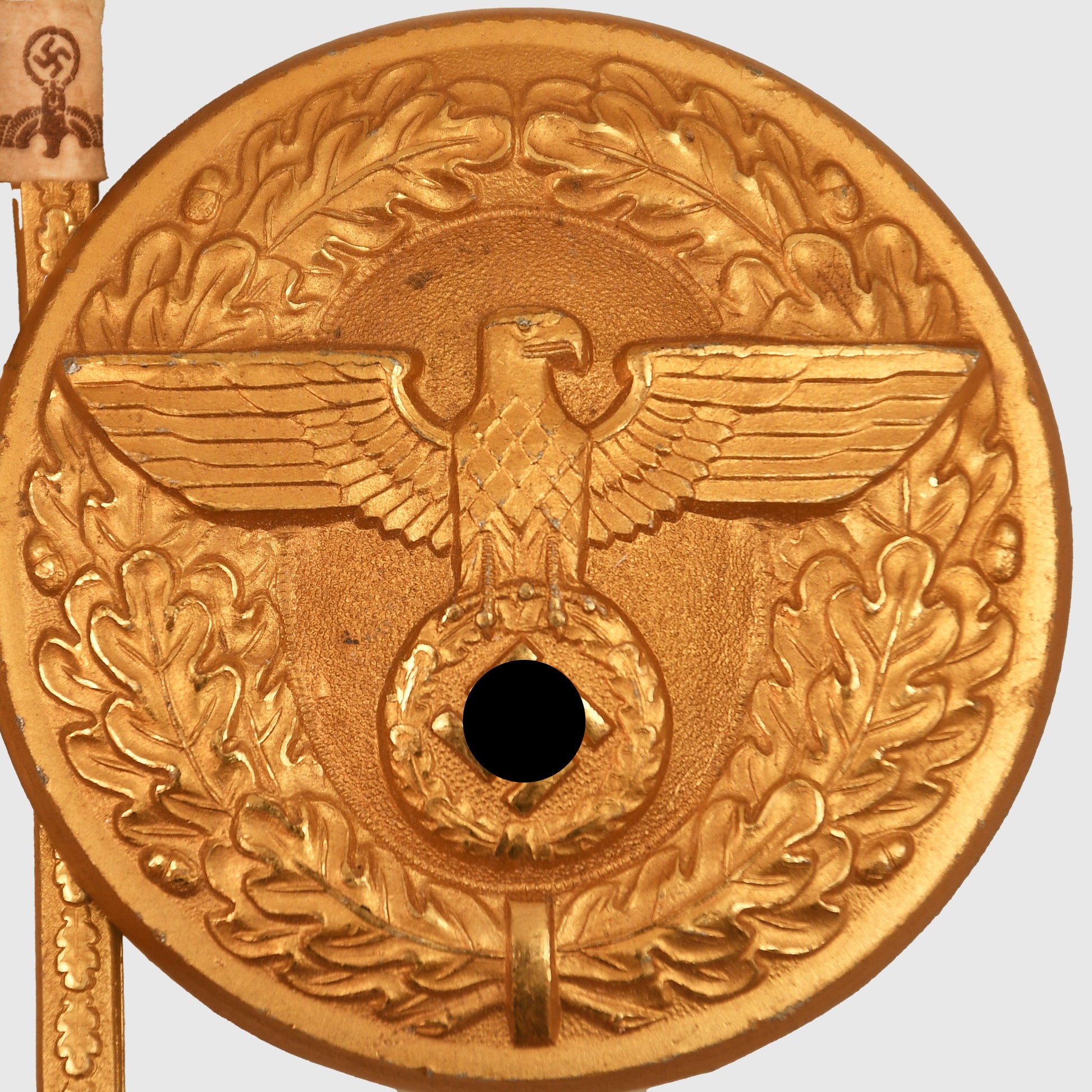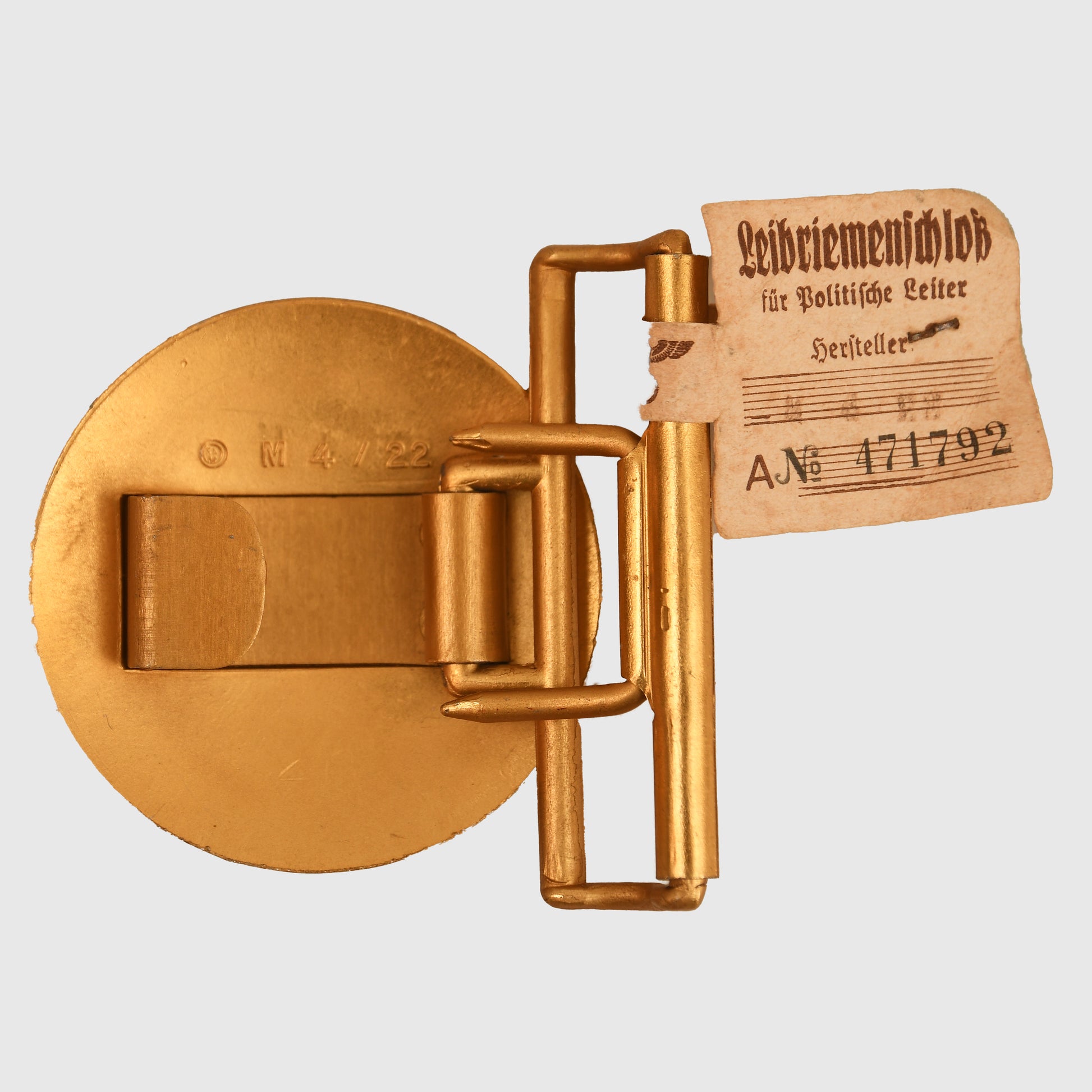 A mint condition circular buckle issued to political leaders, clearly maker marked ‘RZM M4/22’ and accompanied by its original RZM paper label. This example remains crisp and unblemished, reflecting excellent preservation.