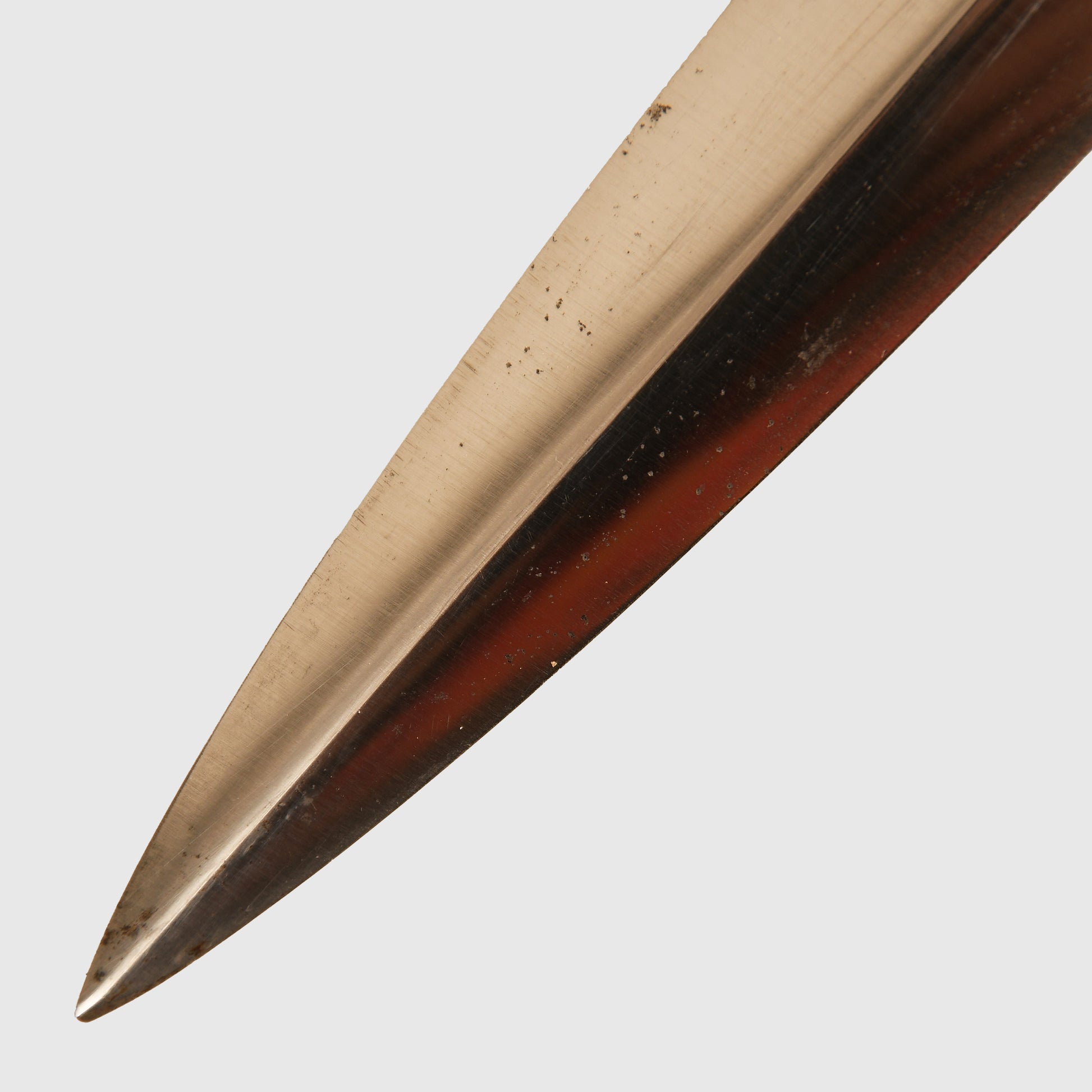 The cross guard and upper pommel, often prone to corrosion, are in superb condition, with only two minor areas of plating lift on the back edge of the upper pommel. The grip is excellent, showing just one small mark midway down the front face.