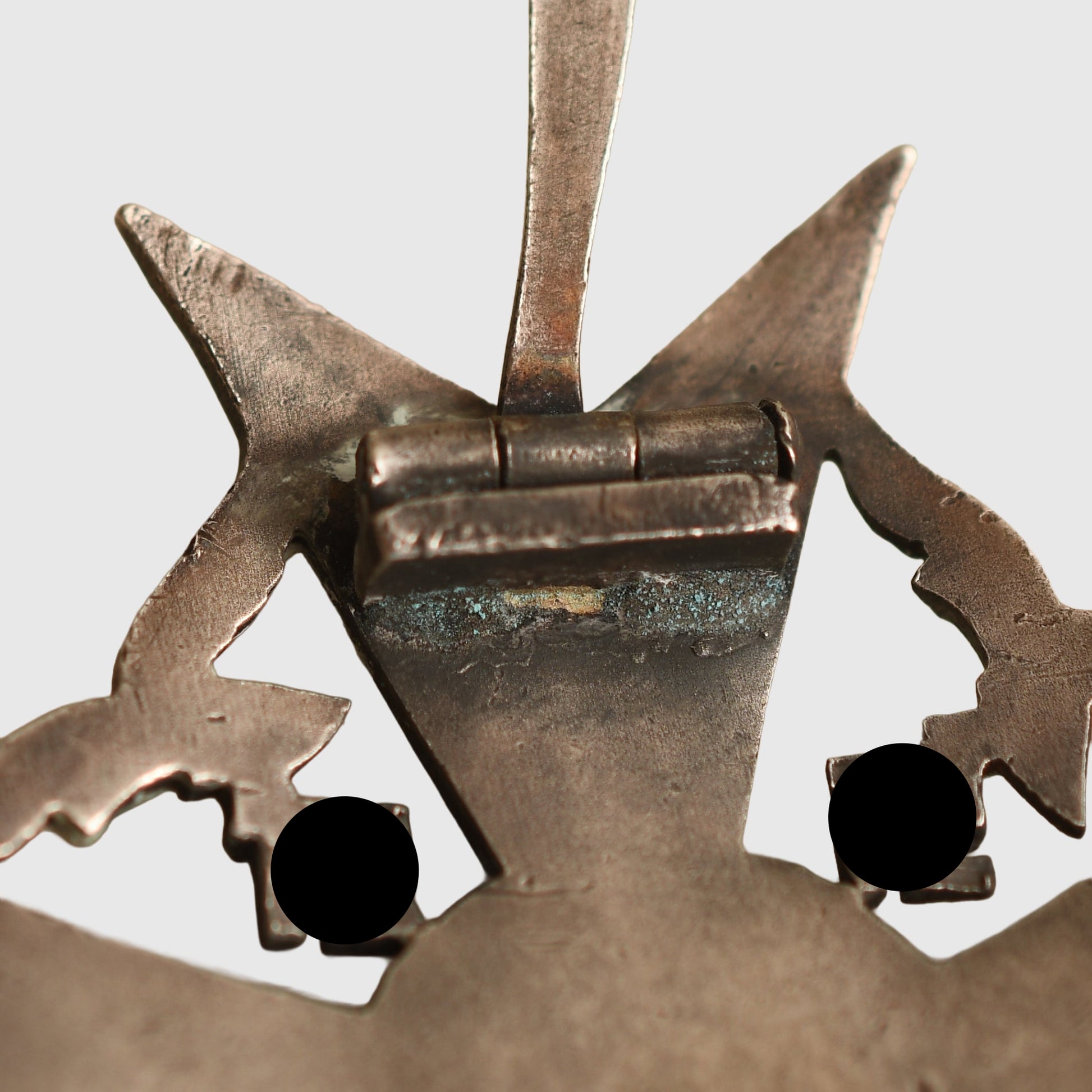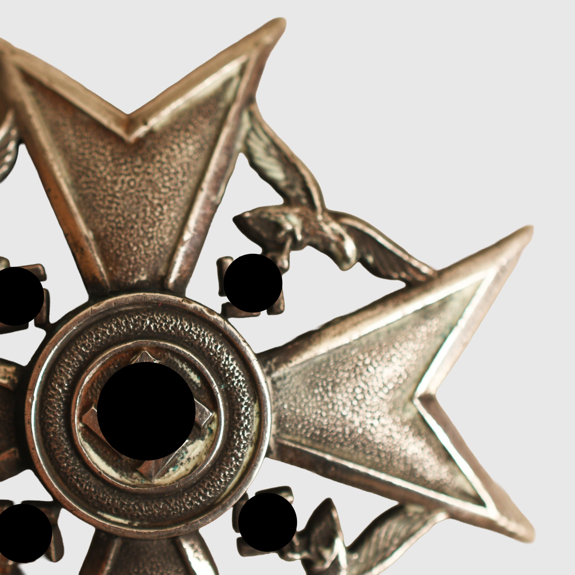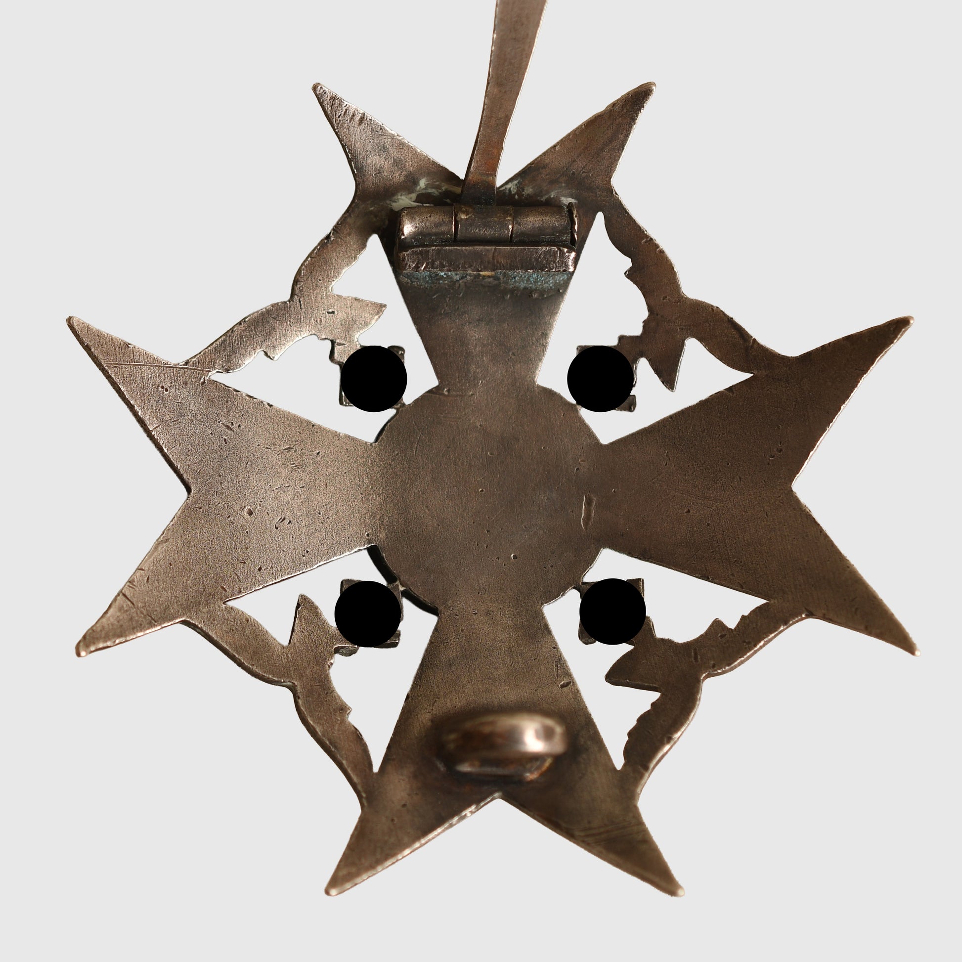 A scarce example of the Spanish Cross in silver without swords, the rarest class of the series with only 327 awards made. The distorted pin and honest wear strongly suggest this piece was one of those few actually worn on a uniform.