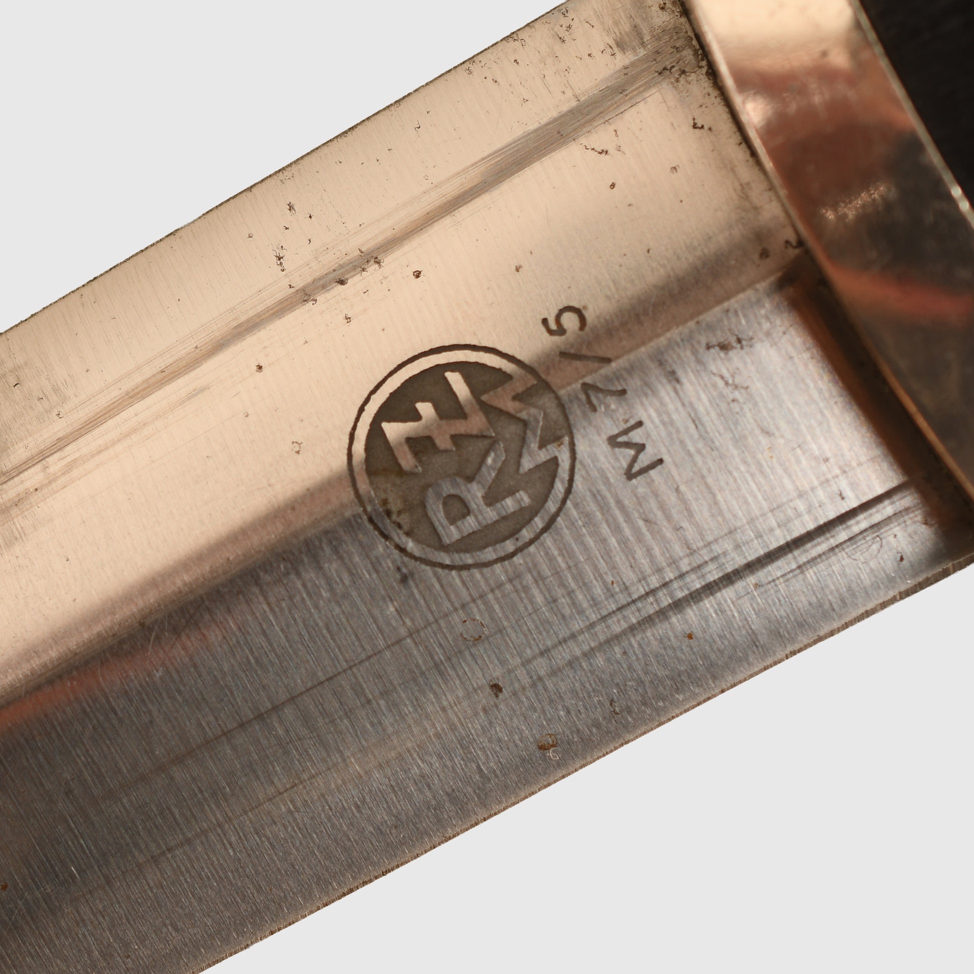 An outstanding opportunity to acquire a magnificent condition Model 33 SS enlisted man’s display piece. The central steel element is in absolutely mint condition, retaining all of its original cross-grain finish, with the contrasting darker background to the motto standing out clearly against the brighter surface. Maker marked RZM 7/5, corresponding to Carl Julius Krebs.