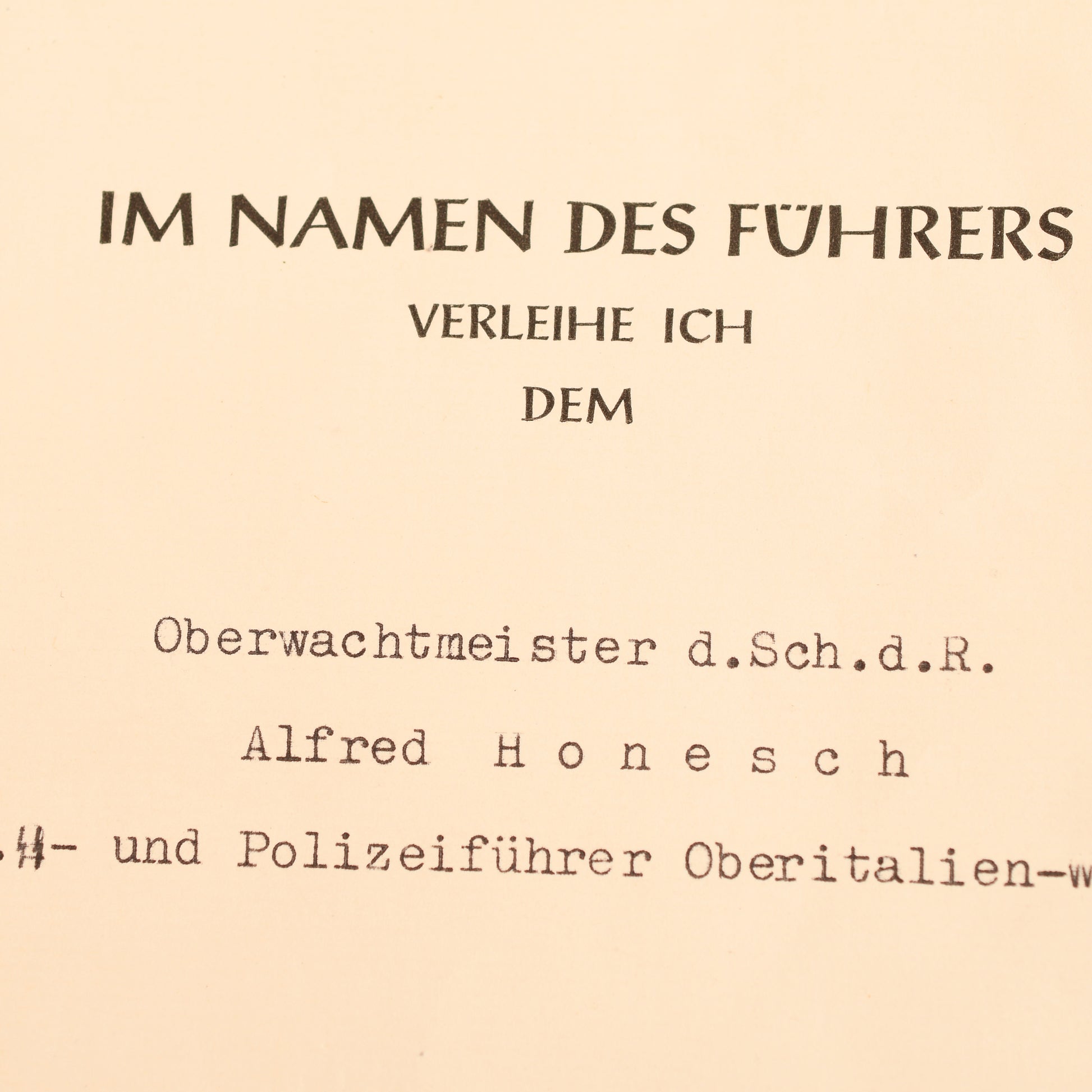 German WWII SS War Service Cross 2nd Class with Swords Citation – Honesch