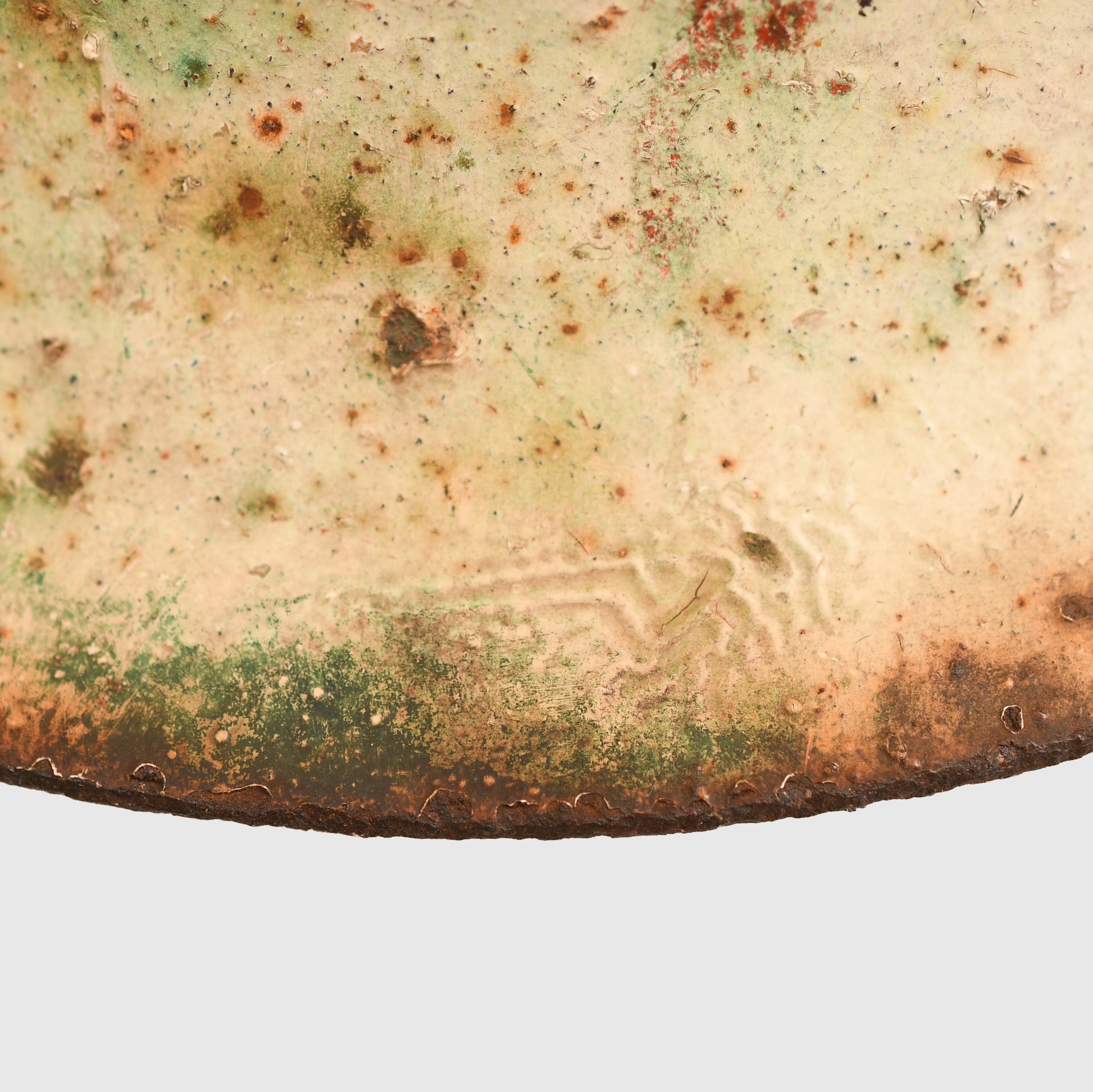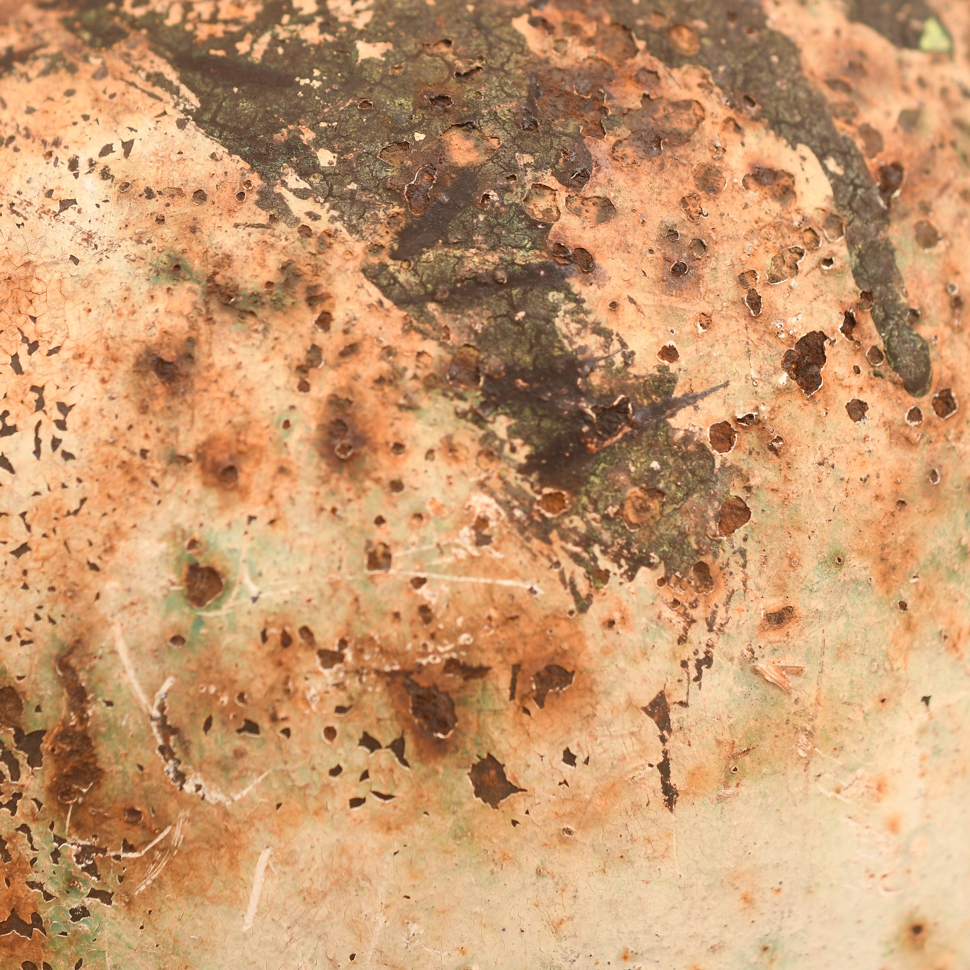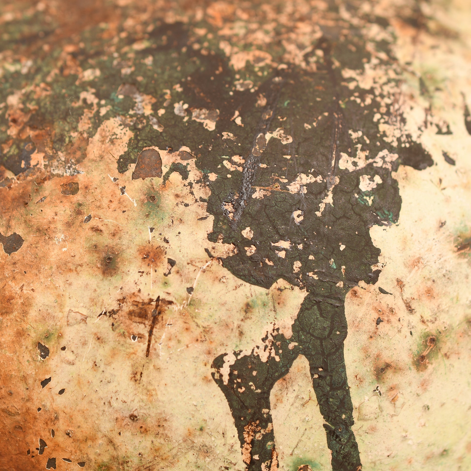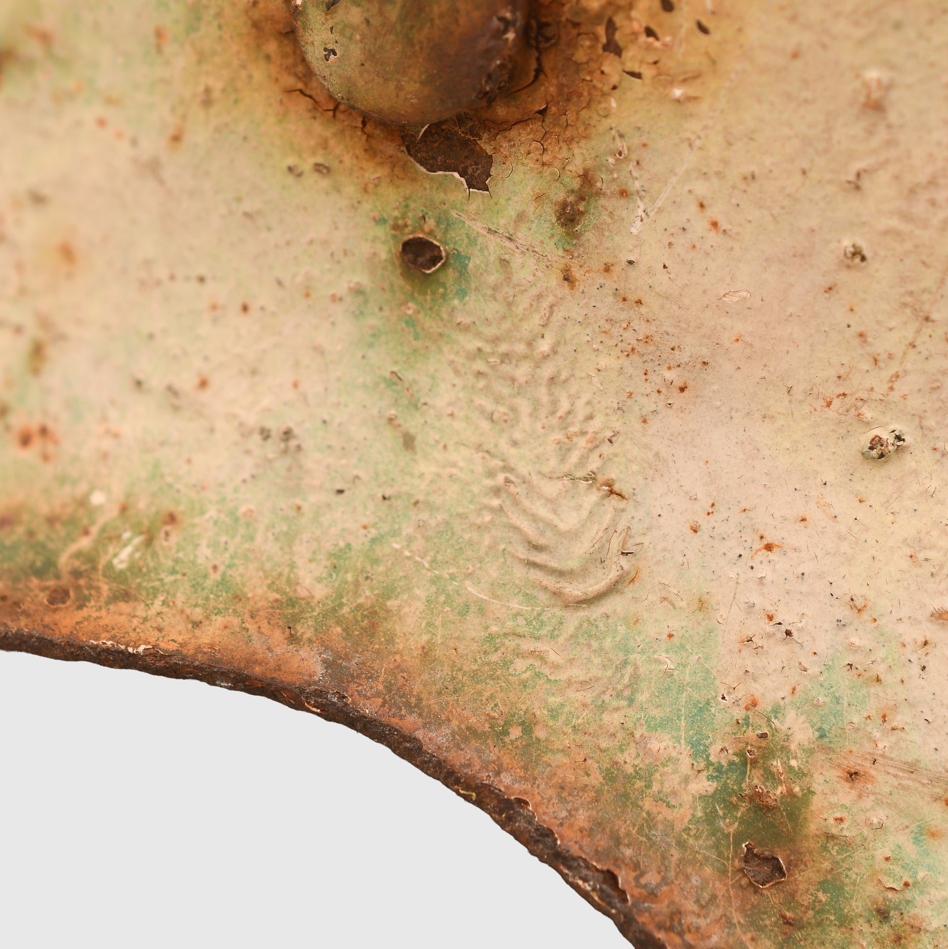 A fabulous barn find helmet, being an M.42 raw edge combat helmet, painted white with the remains of its red cross to the face side. Considerable rust bleed in the crown area, where the white paint has removed itself, revealing the original grey-green paint below. Other parts of the helmet have rust bleed with, not only rust marks, but with the colour of the grey green below flooding through. To the front of the helmet can clearly be seen the outline of a red cross. To the interior, the complete shell has a thin layer of rust. The original liner is all complete; the stitching at the reverse side has split, but all the tongues are present. A super rare barn find helmet.