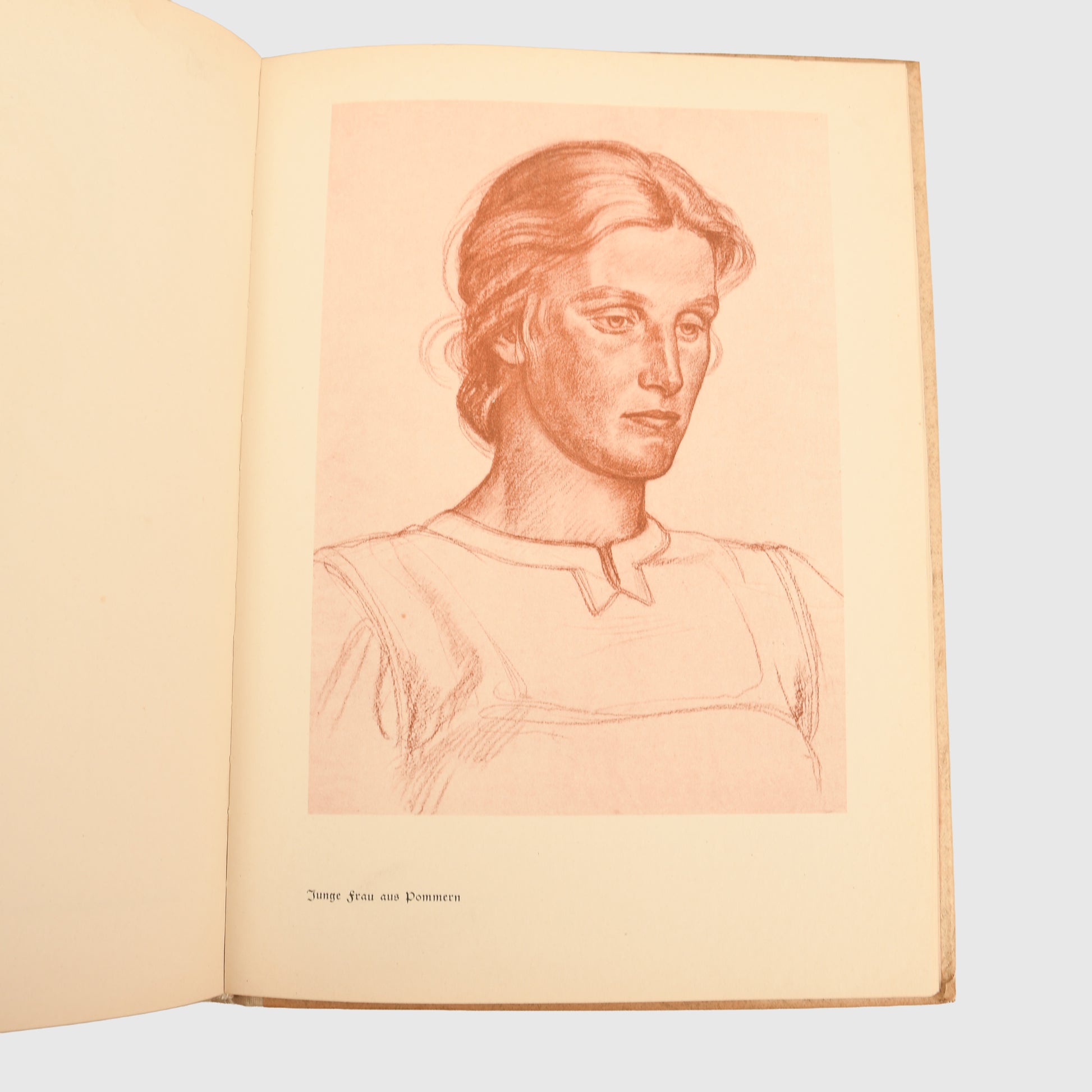 The first book, published in 1939 by the Border and Overseas Publishing House, was intended for international distribution. The interior includes a stamp from the Library of the Ostland Organisation, as well as a secondary stamp from the post-war collection of Francis Catella. The first 40 pages contain descriptive text and prints, followed by 48 full-page reproductions of Willrich’s work in colour, sepia, and black and white, primarily focusing on civilian figures in national or peasant costume.