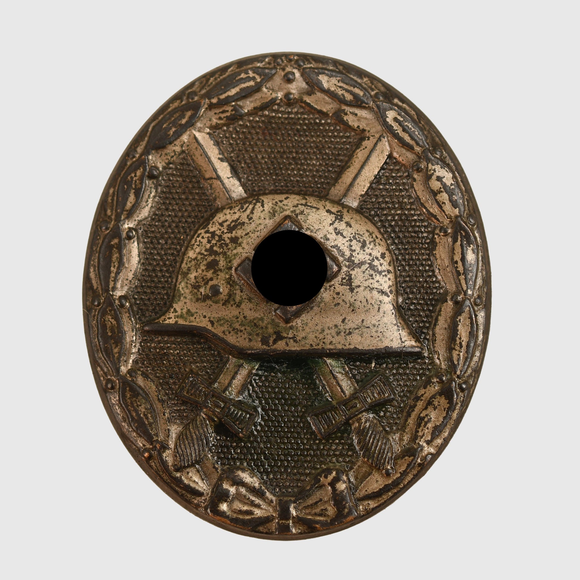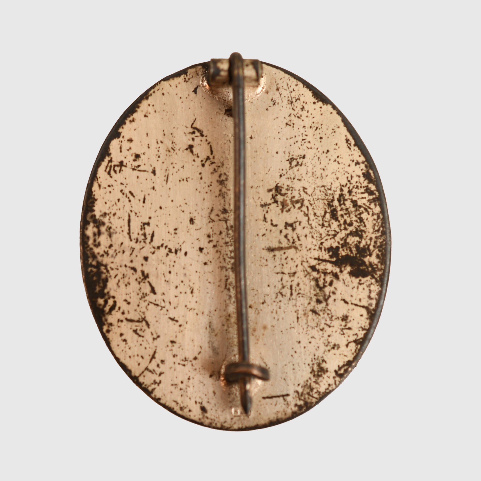 A nice, solid example with much original silver finish remaining, slight rubbing to the silver on the raised swastika from the helmet, maker's mark 13 on the reverse side just below the hook, with its original pin and hinge.