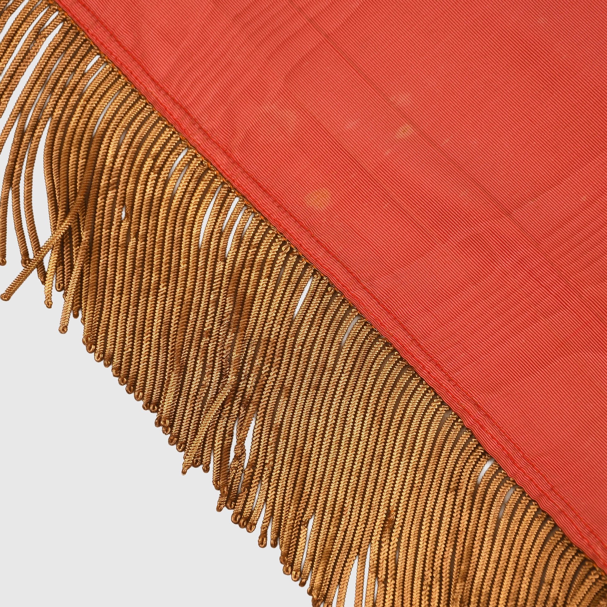This artifact represents the formal state funerary customs of the period and the meticulous hand-embroidery work reserved for official government tributes.