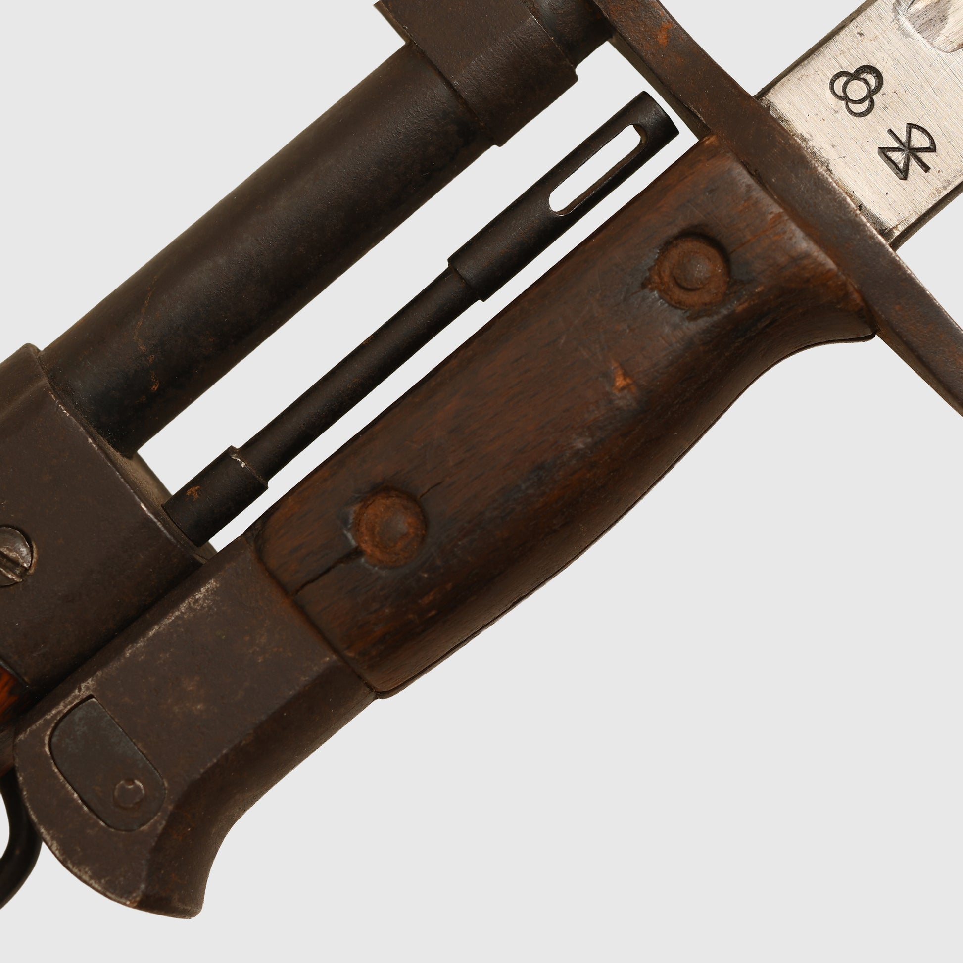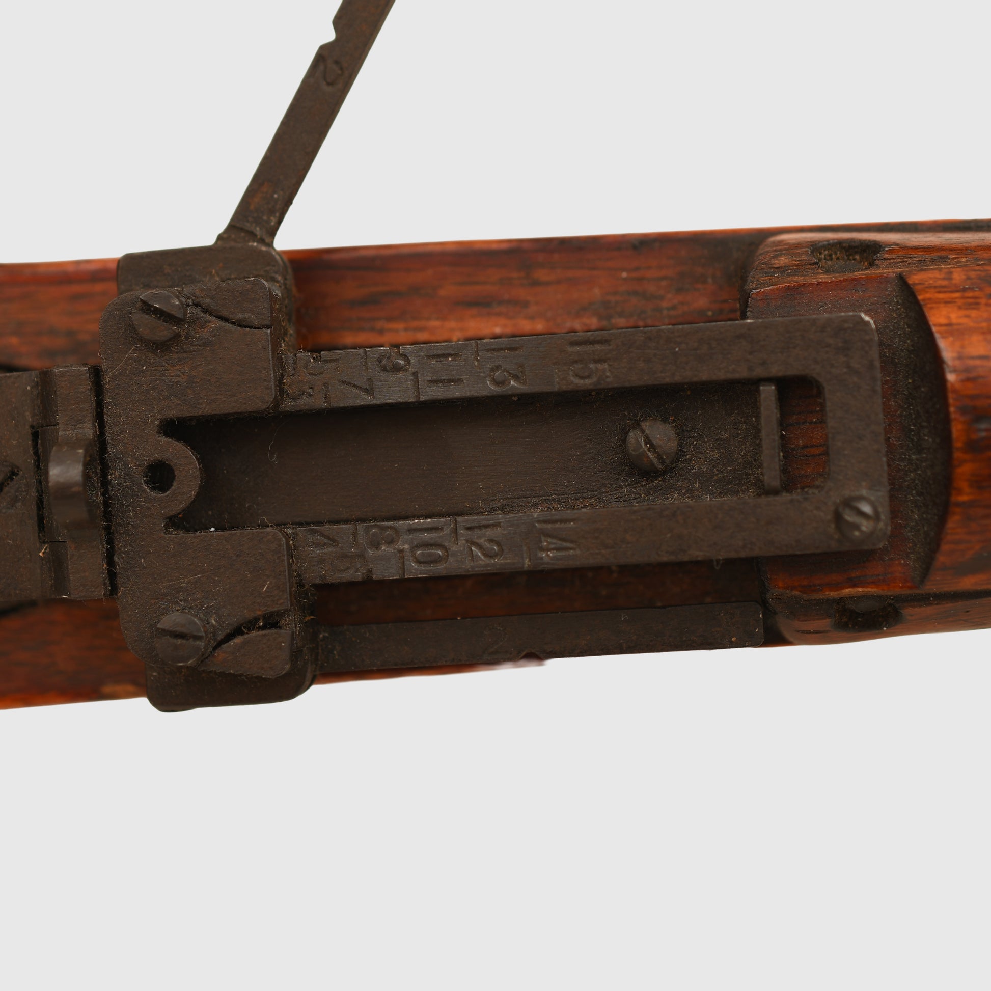 A superb condition service-worn Arisaka rifle, deactivated, that has all its accessories. The wood stock has some bruising but still retains very good colour, the rifle has its bayonet attachment, to which an Arisaka bayonet without scabbard is fitted. Ramrod complete, bipod complete, its flip-up sights complete with the anti-aircraft sights, which are extremely rare, its bolt dust cover complete, its ultra-rare leather strap with kanji lettering to the inside of the strap and with an un-erased chrysanthemum to the receiver. All of the metalwork retains very nice original bluing. The weapon cocks and dry fires and is complete with its 1999 deactivation certificate. The gun number is 42386, barrel length 26 inches, the rifle is the type 99, produced at the Nagoya Arsenal between October 44 and December 44. At the present time, this can only be sold outside the EU. If an EU purchaser wishes to obtain this weapon, it would have to be re-certified with an EU certificate. The weapon can also not be sold within the United Kingdom. A better example of this rifle, complete with all of its accessories, would be extremely hard to find.