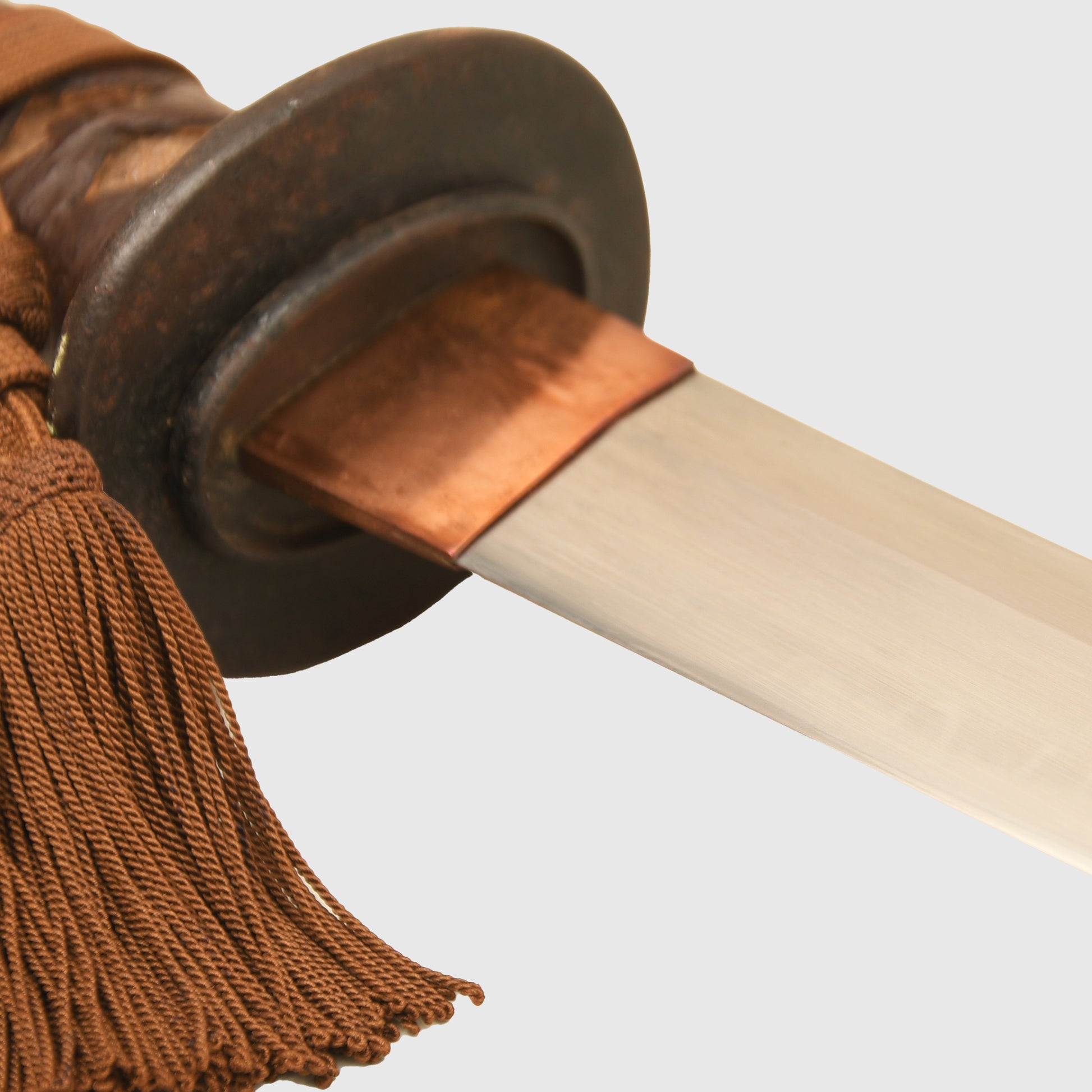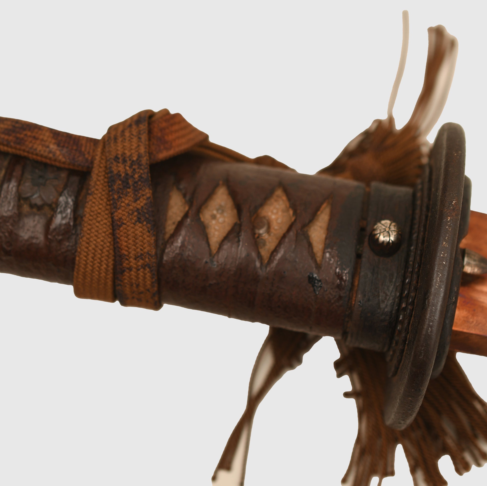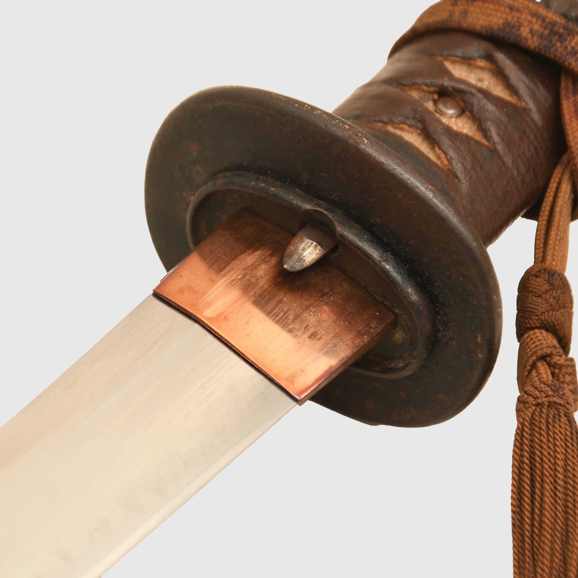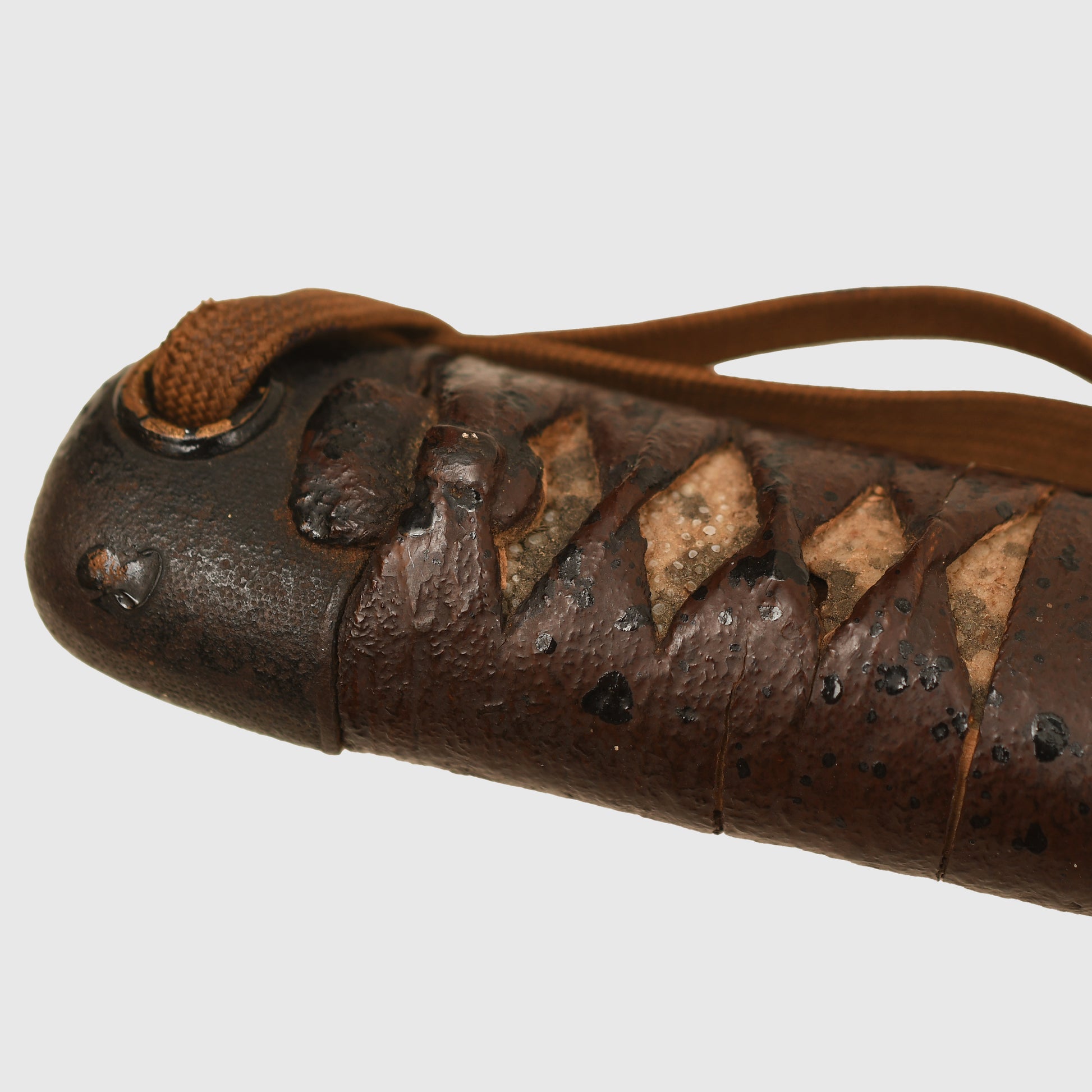 Of particular note, the entire piece—including both hilt and scabbard—has at some point been fully overpainted in black. This is often associated with night operations, where reflection needed to be reduced during raids. The original knot remains in place and also shows signs of black paint staining, consistent with field use.
