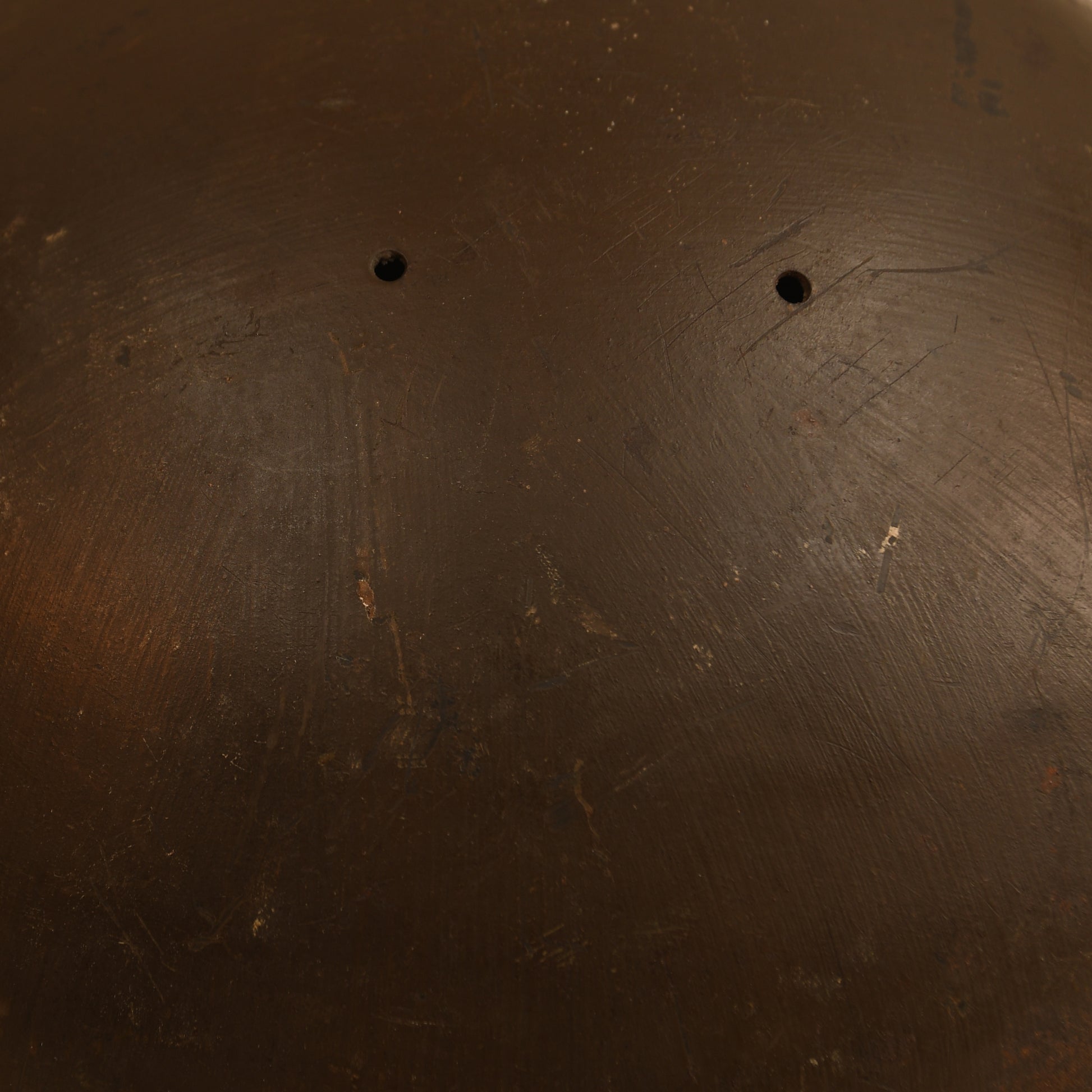 An excellent example of the iconic Type 90 combat helmet worn by Japanese troops throughout WWII. The exterior retains its full original paint finish, complete with the army star to the front. Around the lower edge, faint traces of a slightly different shade of paint form a hand-applied line — a marking applied at army facilities once a shell and liner had been assembled together, signifying the helmet was complete and ready for issue. (This feature is unique to army-issued helmets; naval examples were supplied fully assembled from the factory and lack this line.)