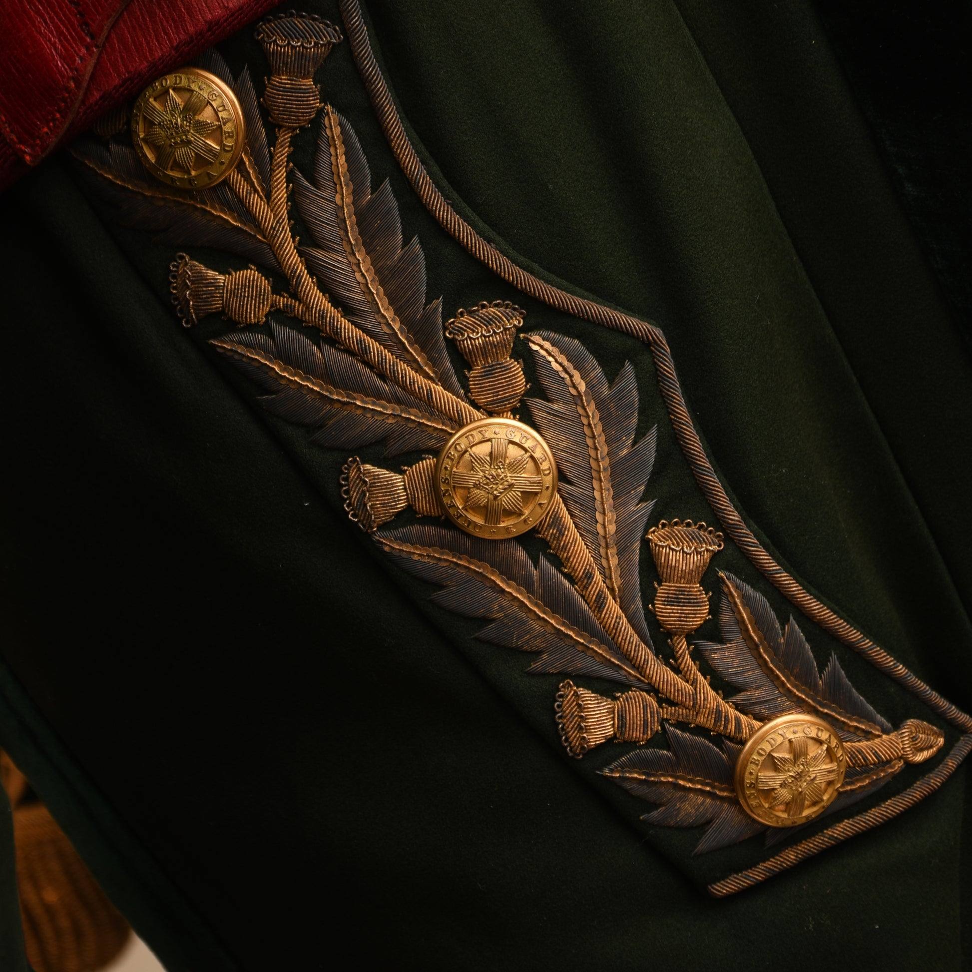 This is a truly spectacular and rare offering: a complete, museum-quality uniform for the Royal Company of Archers, dating from the pre-1870 period. The Royal Company of Archers serves as the Sovereign's Bodyguard in Scotland, a role equivalent to the Honourable Corps of Gentlemen at Arms in England. This paramilitary organisation is comprised of veteran military officers and attends the monarch at all major ceremonial events in Scotland.