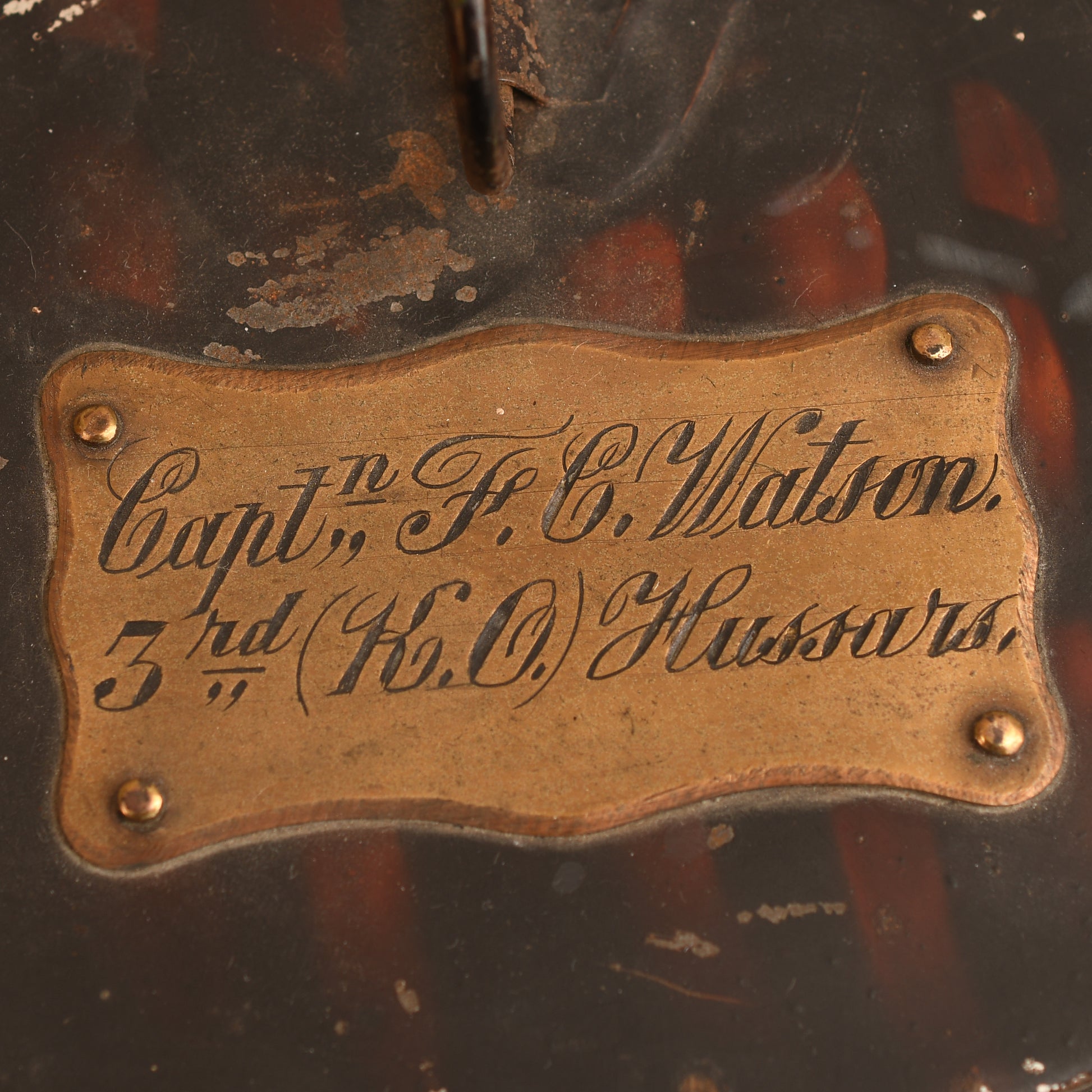 The 3rd Hussars, originally formed in 1685, have a long and distinguished history including service in the Napoleonic Wars and the Boer War. At the outbreak of WWI, the regiment was part of the 4th Cavalry Brigade and saw service in France, later converting to armoured troops for WWII. This complete, identified set represents a rare survival of Edwardian-era military splendour.