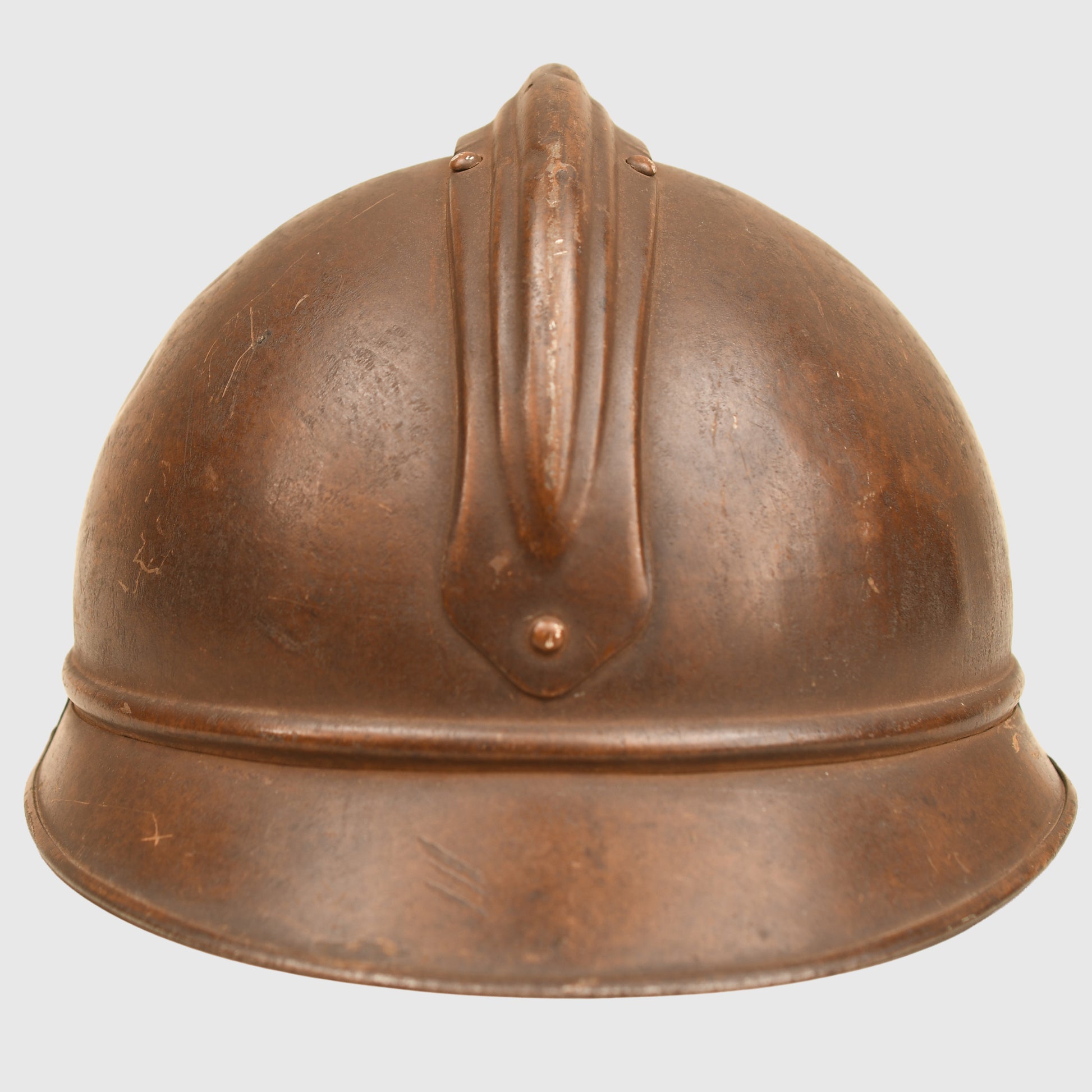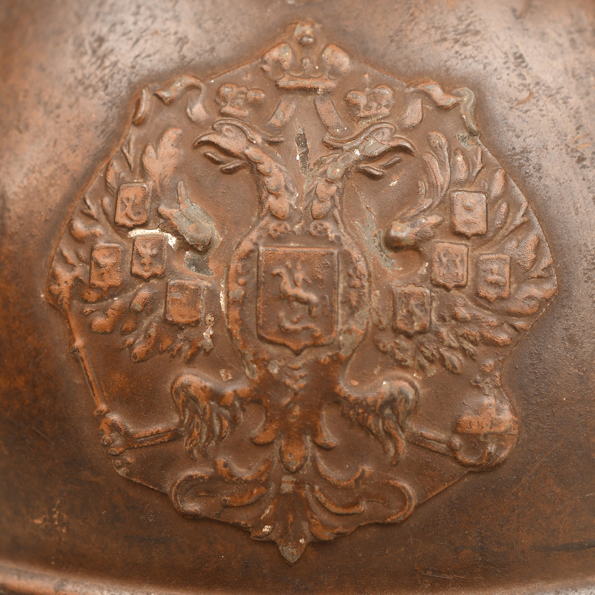 This is a rare example of the French-designed Adrian helmet as issued to the Imperial Russian Army during the First World War. The shell is a large size and retains its specific Russian brown paint finish.