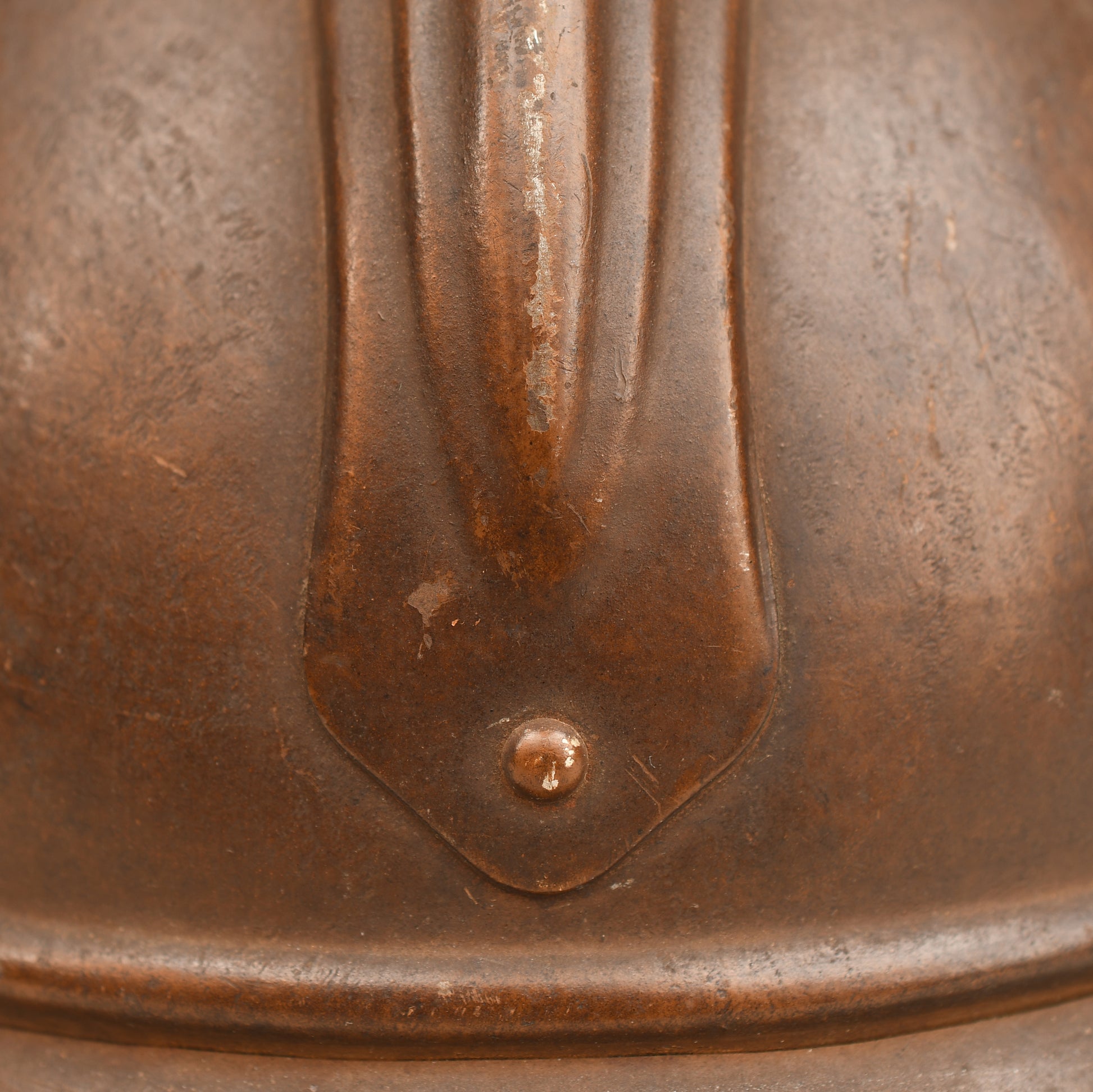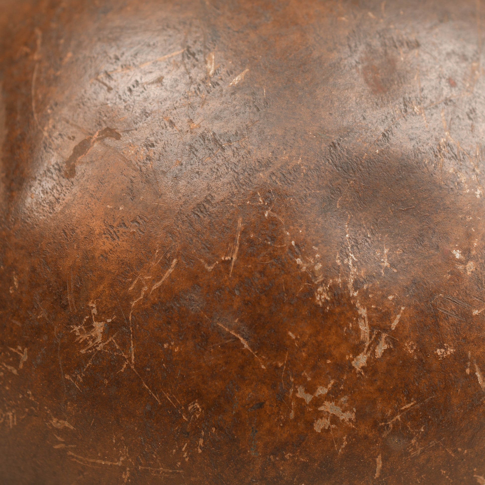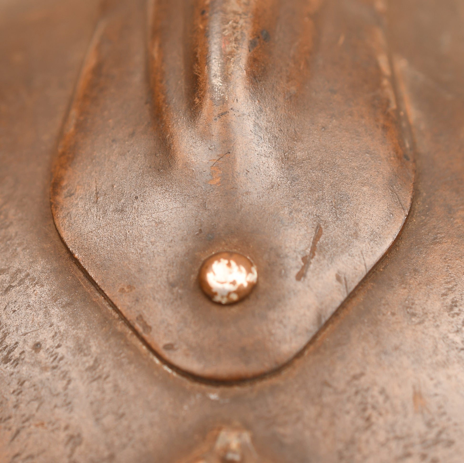 The interior is complete with its brown and black leather liner, featuring all tongues and the original drawstring. The helmet is also complete with its original leather chinstrap. Large-sized examples of the Russian-issue Adrian are increasingly difficult to locate, especially when found with original badges and internal components intact. This is a primary piece of Imperial Russian headgear from the Great War period.