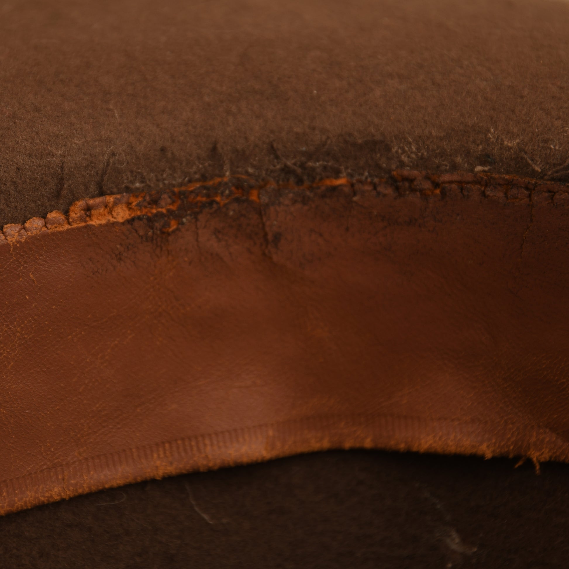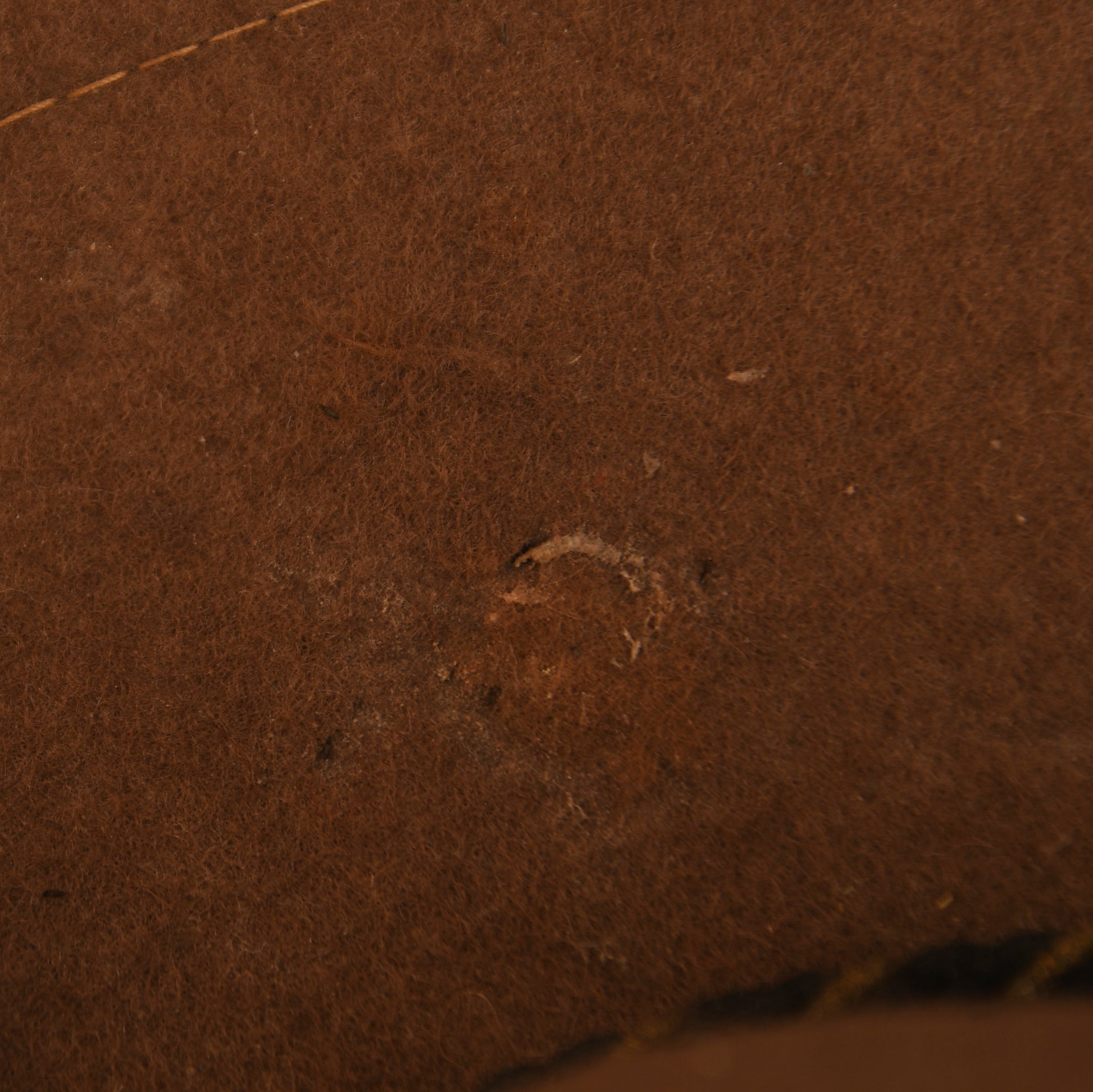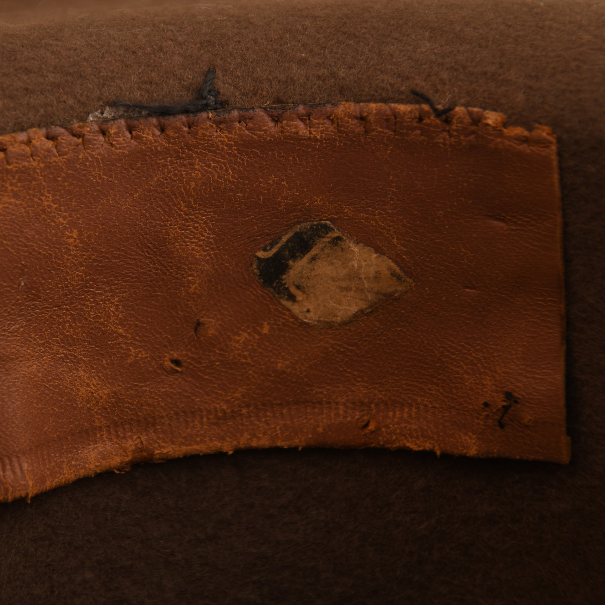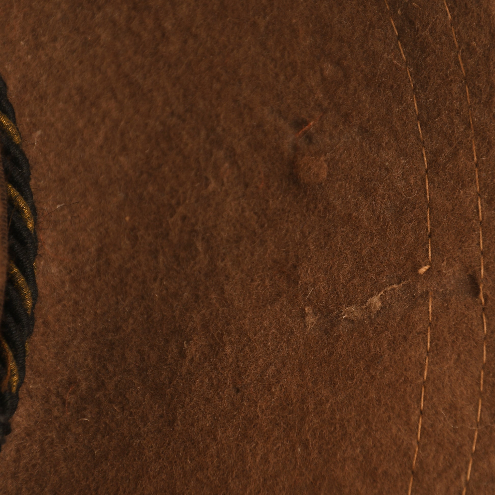 A rare example of the Model 1895 U.S. campaign hat, worn during the Spanish-American War and the late Indian Wars. This hat is in exceptionally good condition, showing only minor moth tracking to the main body with no distinct holes. It features a classic double-stitched edge, a black ribbon around the base of the crown, and a black-and-gold twisted cord officer’s lace. Punch-hole ventilation is present on either side of the crown. The original leather sweatband remains, with one section missing.