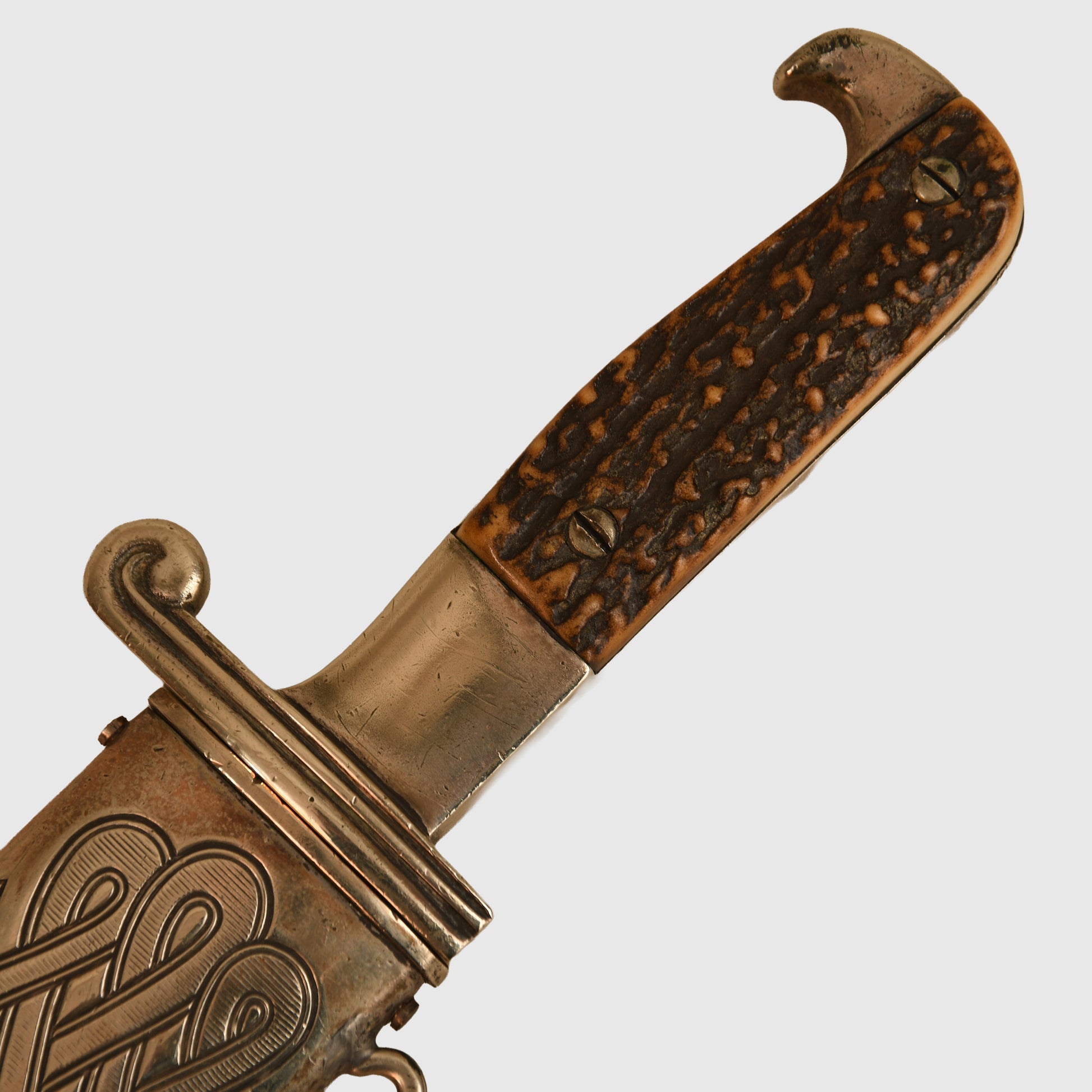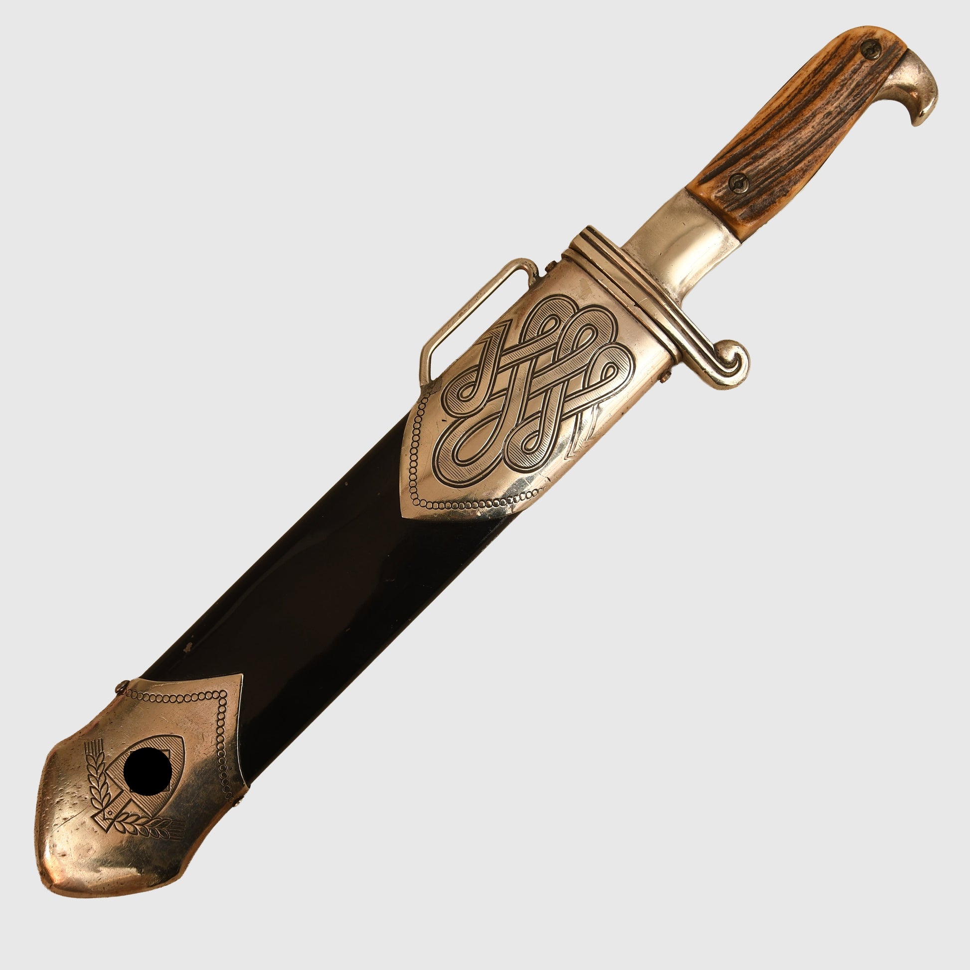 A very attractive Second World War RAD display piece by Carl Julius Krebs of Solingen, complete with correct RAD acceptance stamp and additionally marked “Ges Gesch”. The main component shows only very light scuffing, consistent with careful handling. The stag grip plates are undamaged and well fitted.