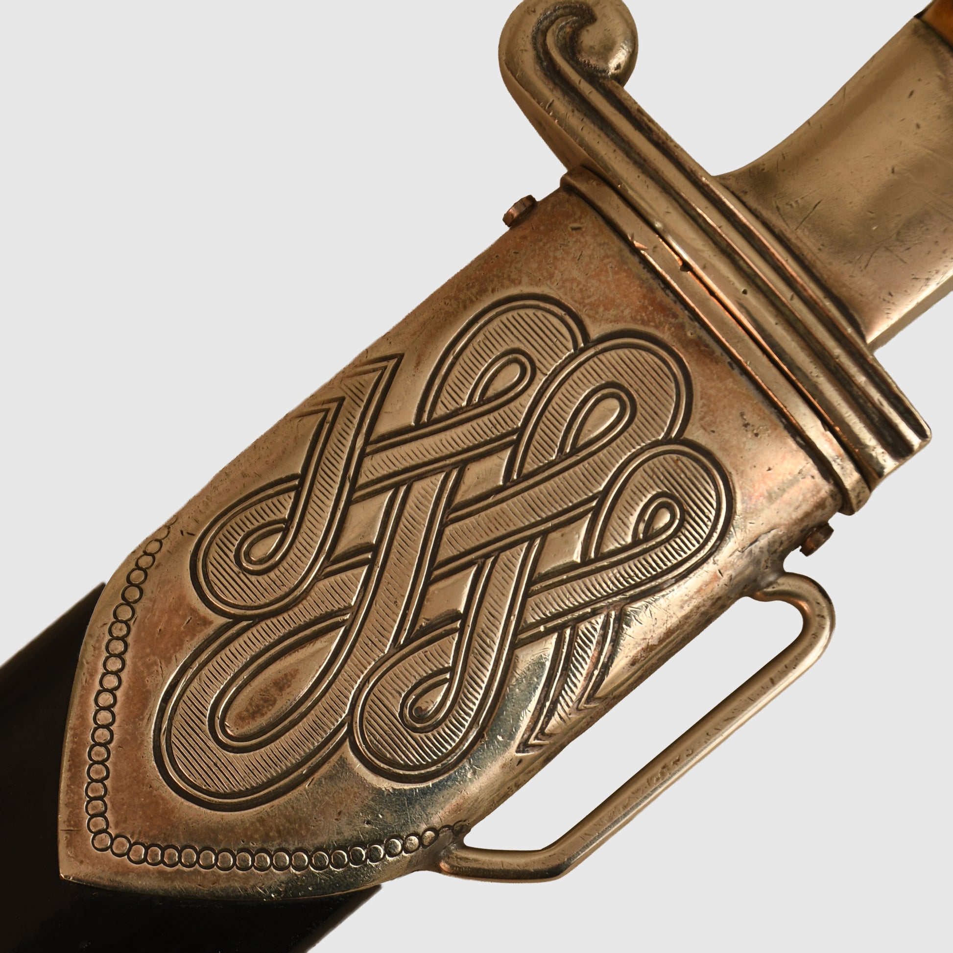 The nickel plating to all areas of the hilt is fully intact and presents extremely well. The scabbard fittings are in excellent condition, with only slight thinning to the plating on the lower mount. The scabbard itself retains good original paint, with a few minor indentations to the lower mount. All fixing screws are present and secure. A fine example of this RAD pattern.